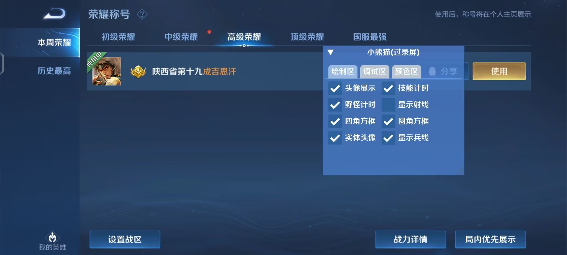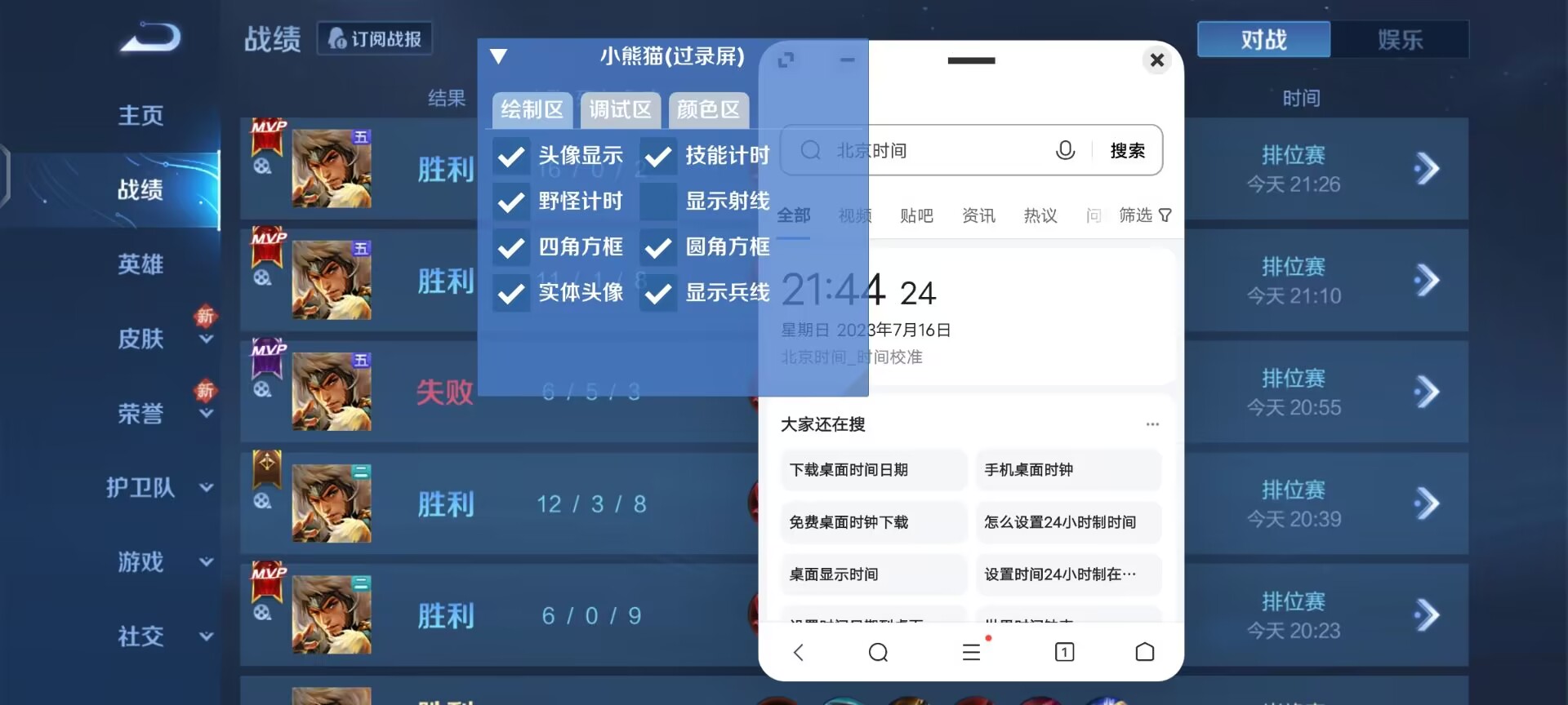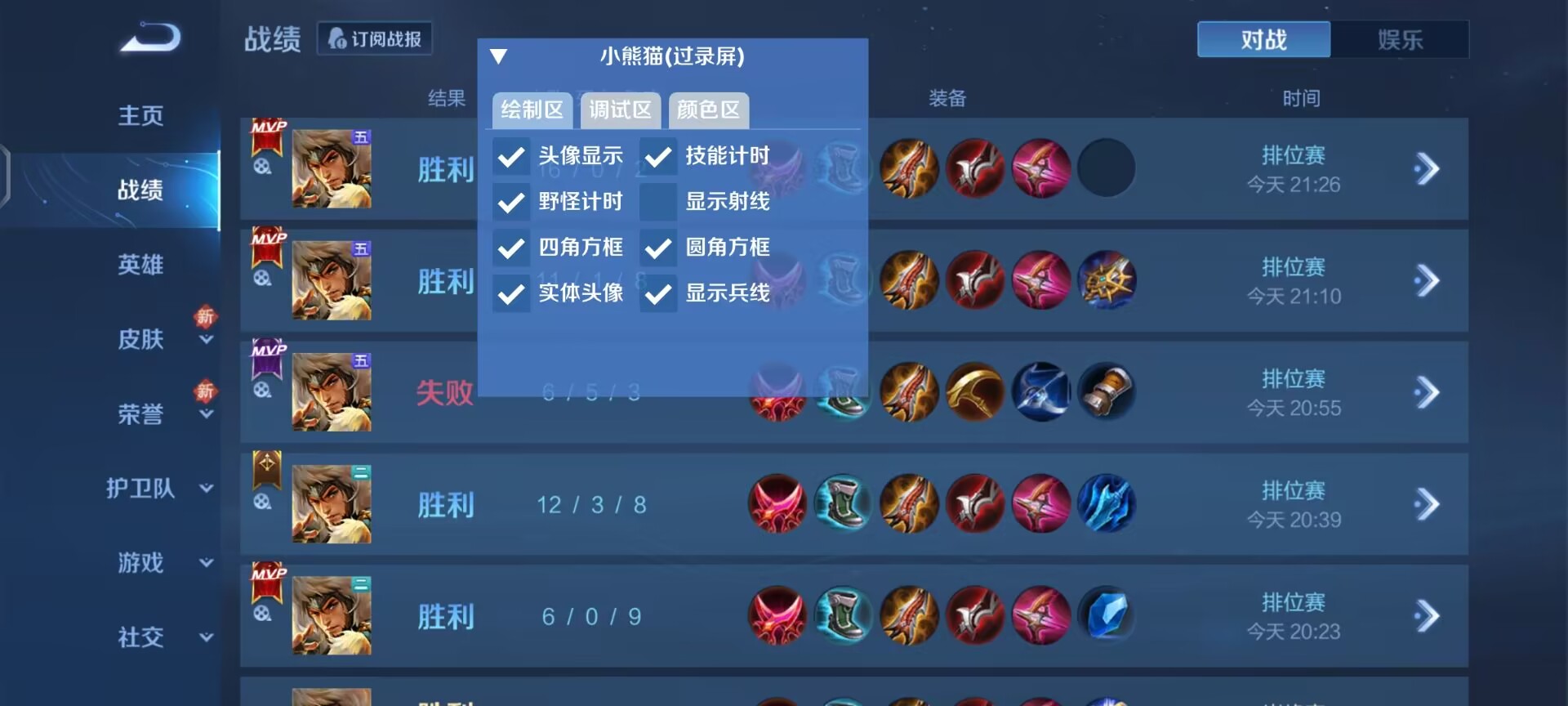 功能:显示头像,显示血量,人物射线,实体方框,全野怪计时,大招技能计时,显示兵线,上帝视角,过巅峰,过直播,过录屏,支持全机型流畅运行丝毫不卡顿,不发热!